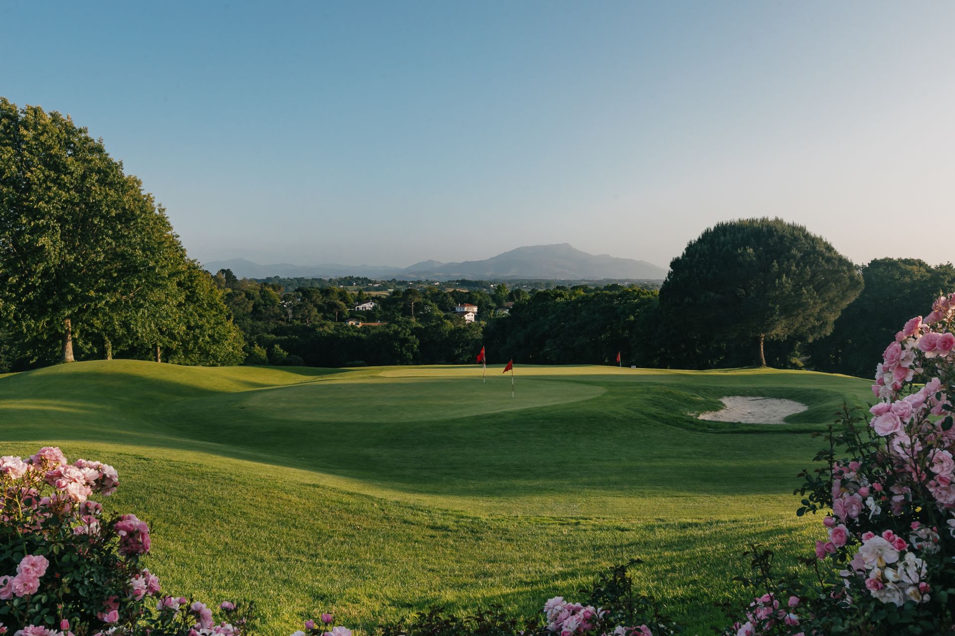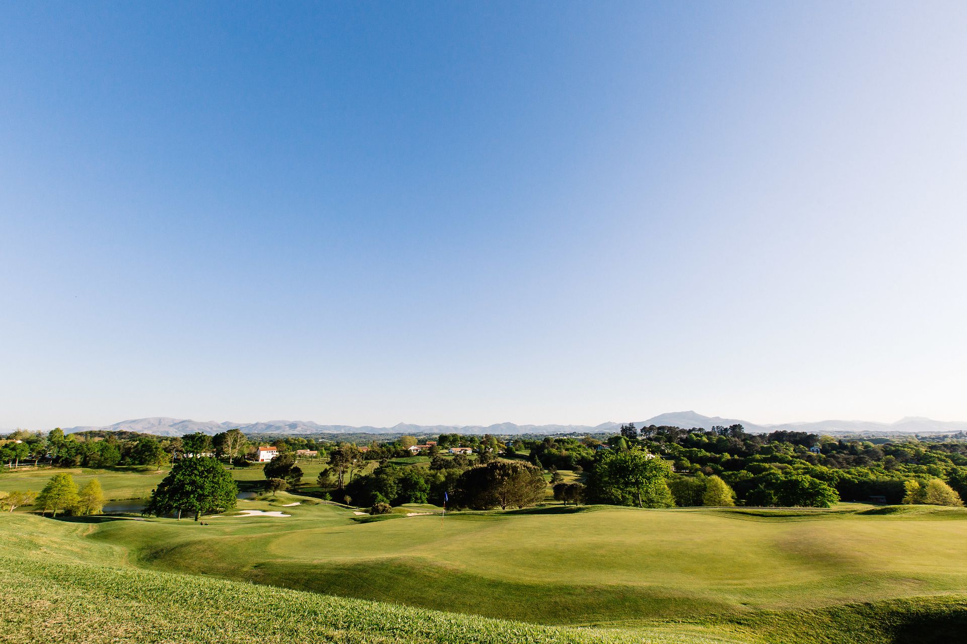 Aux portes de Biarritz, le golf d'Arcangues s'inscrit dans un site majestueux autour du renommé village d'Arcangues, offrant une énorme diversité de jeu avec neuf trous versant sud face à la chaîne des Pyrénées, six trous versant nord et trois trous autour du Château d'Arcangues.